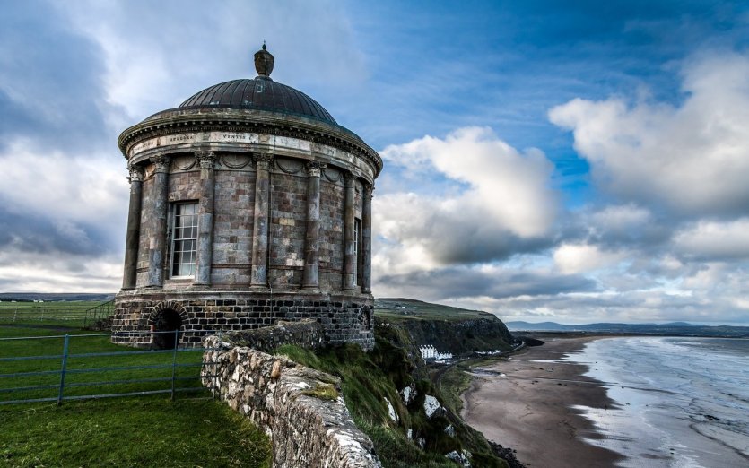 Mussenden Temple is located on Dragonstone Beach in Derry County. Built in the 18th century on the model of the Temple of Vesta in Italy, it was originally intended to house religious manuscripts. Perched more than 36 m above the sea, it offers a sublime view. The quote from Lucretia in the temple is significant: "How pleasant and safe it is to see the shore, the roll, and to hear the storm roar In Game of Thrones, this is where Lady Melisandre burns the seven idols of Westeros in the episode Le Nord se souvient