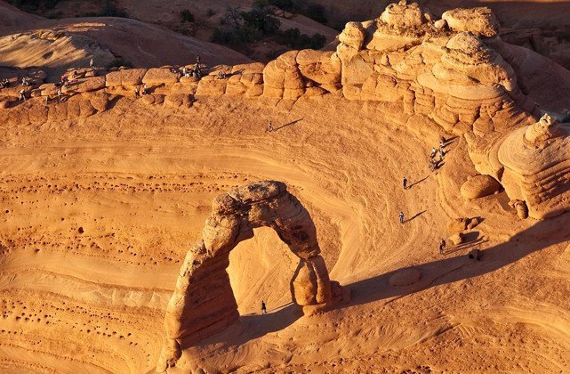 Not far from the town of Moab is the exceptional Arches National Park. It is famous for its beautiful fins, cliffs, pillars and natural monuments. But what makes it special is its high concentration of arches, the largest in the world. More than 2,000 natural sandstone arches can be found in this fantastic territory, which covers an area of 310 km2. The best known are Delicate Arch, which is 20 metres high, Landscape Arch, which is the longest in the world at 89 metres and Sand Dunes Arch, which, as its name suggests, is found in sand. The red-orange colours change according to the time of day and the position of the sun and the spectacle offered is magnificent. To enjoy this incredible scenery, you can hike on foot, but you should know that from the air, the views of the different elements that make up the national park are breathtaking. So don't hesitate to get on board a small tourist plane piloted by an English-speaking professional. During a 30-minute flight, he will not hesitate to point out where the main natural curiosities of the park are located.